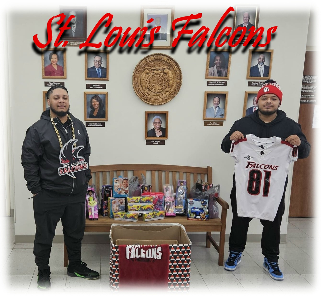 St Louis Falcons Minor League Football Team and The City of Black Jack working together. Thanks to all that donated and even made cash and more donations everything helps those that are less fortunate. God bless everyone and Happy Holidays from the Falcons.